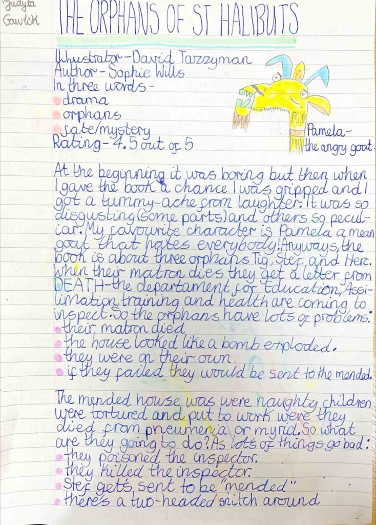 Our book review this week comes from Judyta in Year 6 – sounds like a good book!