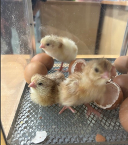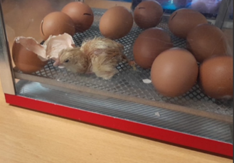 The KS1 area has been buzzing this week with the arrival of our new visitors! We started with 10 eggs and now we have 10 little chicks! We were super lucky to see 3 eggs hatch right in front of our eyes! We have 6 boys and 4 girls. After they hatch in the incubator, they need to stay there for 24 hours before we can transfer them into the brooder box. Next week when the chicks are bigger and stronger, we will be able to hold them! A massive thank you to PTA who have paid for this experience for our children! As quoted from a reception child, ‘This is the best week ever!!’